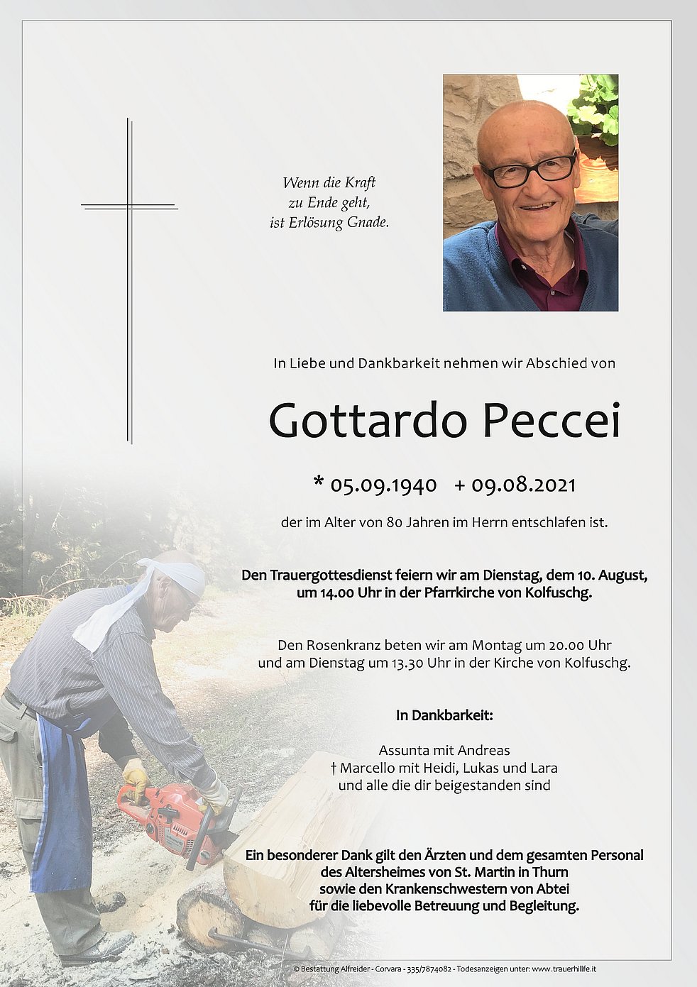 Den Trauergottesdienst feiern wir am Dienstag, dem 10. August, um 14.00 Uhr in der Pfarrkirche von Kolfuschg.