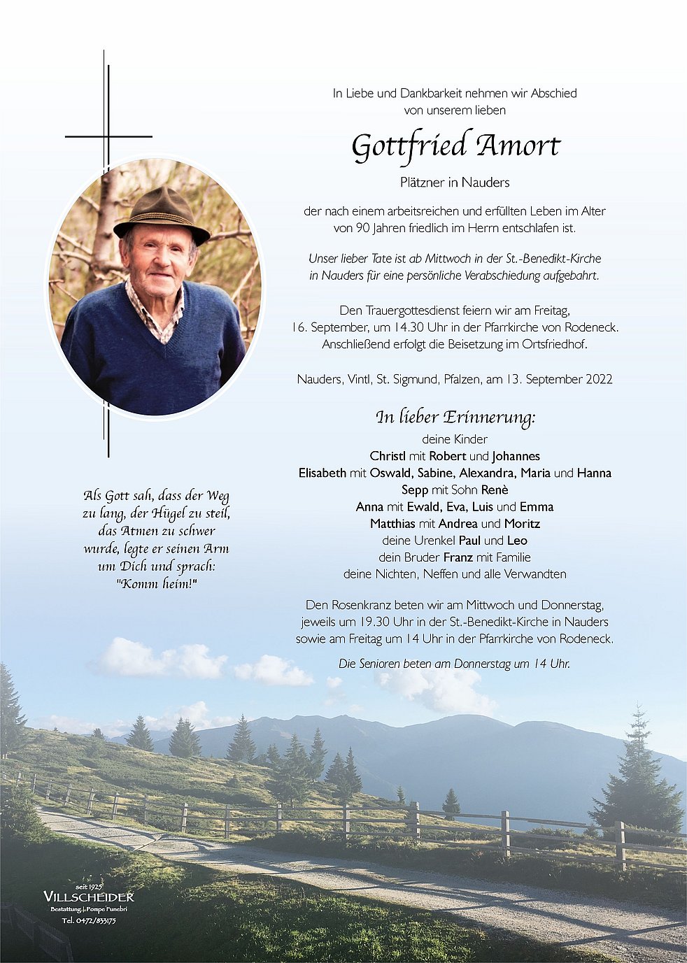 Begräbnisgottesdienst: 16.09. - 14:30 Uhr Rodeneck