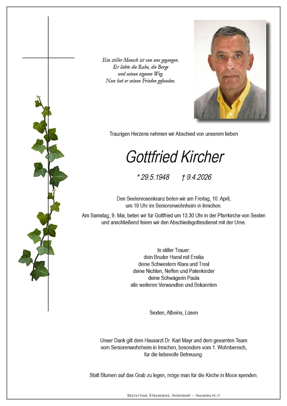 Trauerfeier: 09.05. - 14:00 Uhr Sexten