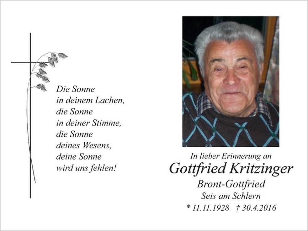 Wir danken dem Pfarrer Remigius Weissteiner,