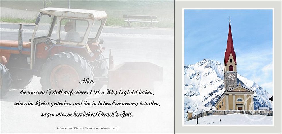 Vergelt’s Gott allen, die an den Seelenrosenkränzen und an der Beerdigung von unserem Friedl teilnehmen.