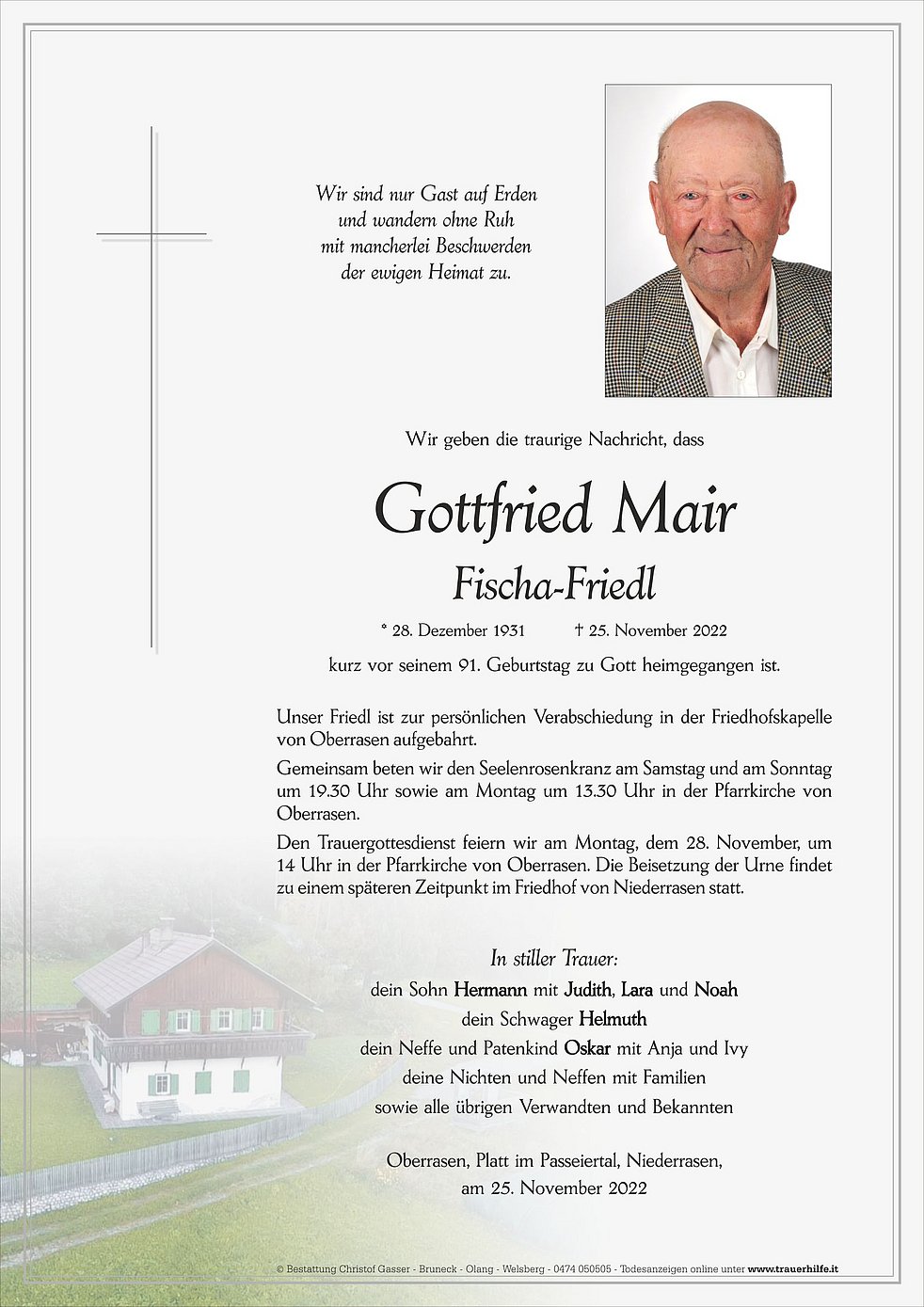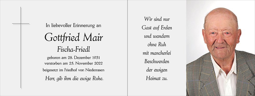 14 Uhr in der Pfarrkirche von Oberrasen. Die Beisetzung der Urne findet zu einem späteren Zeitpunkt im Friedhof von Niederrasen statt.