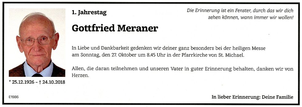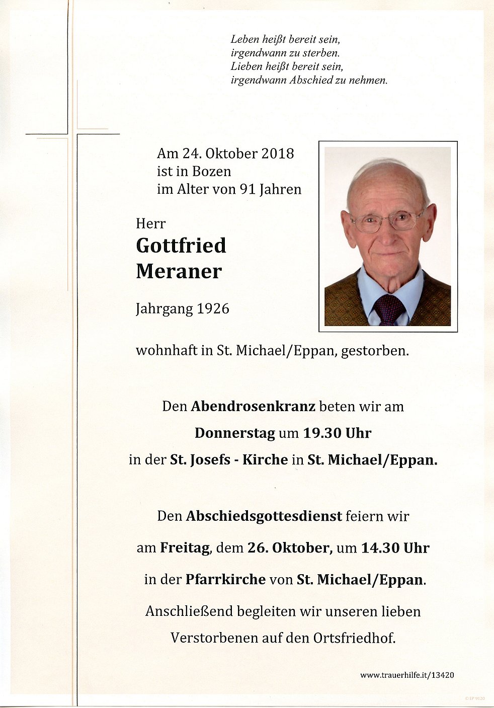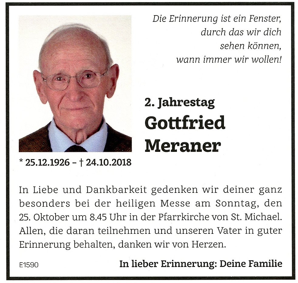 Den Abschiedsgottesdienst feiern wir am Freitag, dem 26. Oktober um 14.30 Uhr in der Pfarrkirche von St. Michael/Eppan.