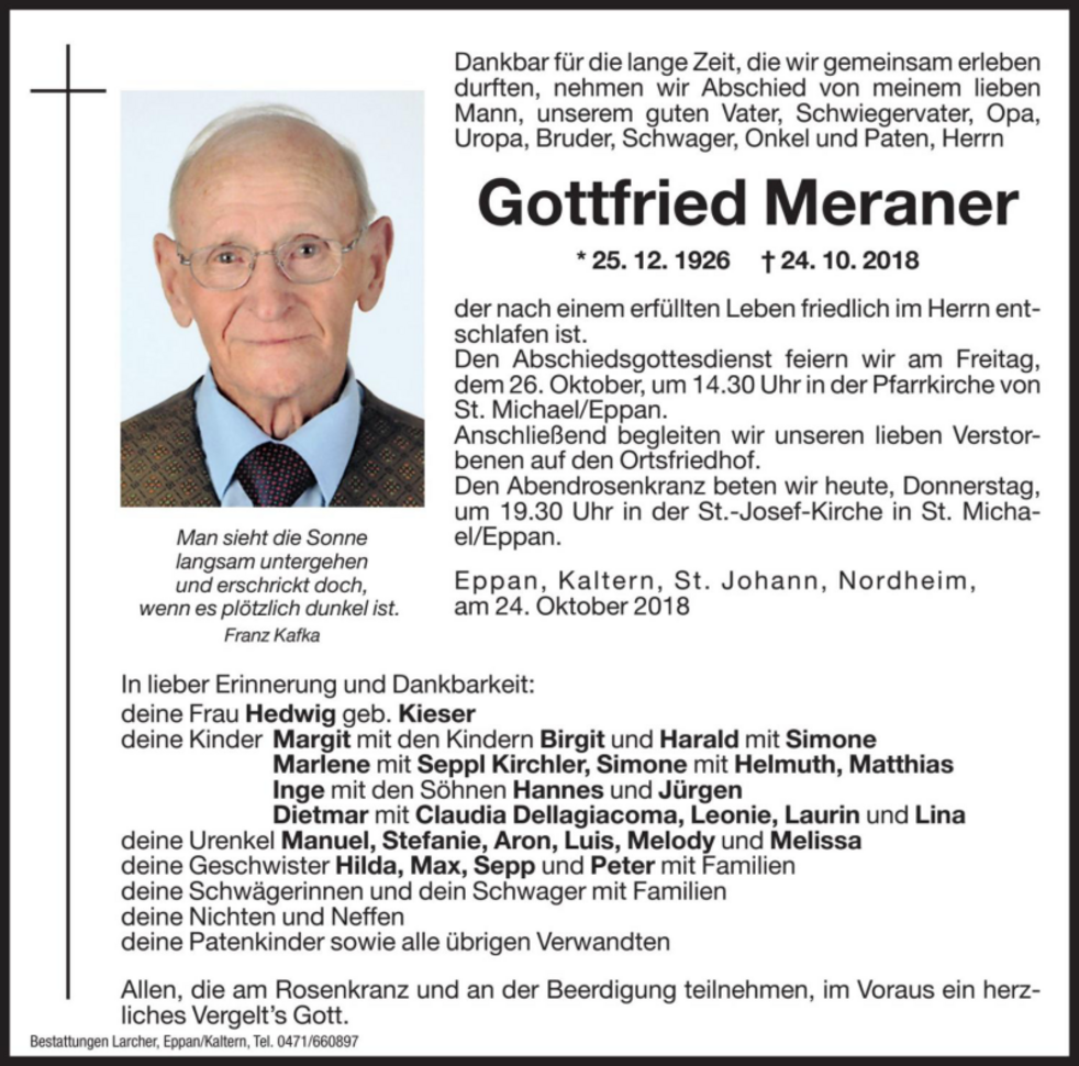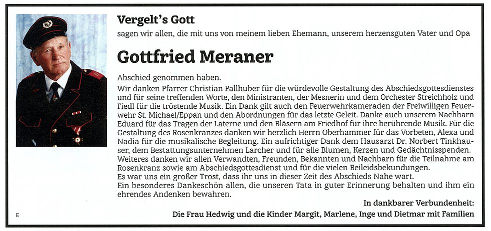 Allen, die am Rosenkranz und an der Beerdigung teilnehmen, im Voraus ein herzliches Vergelt´s Gott.