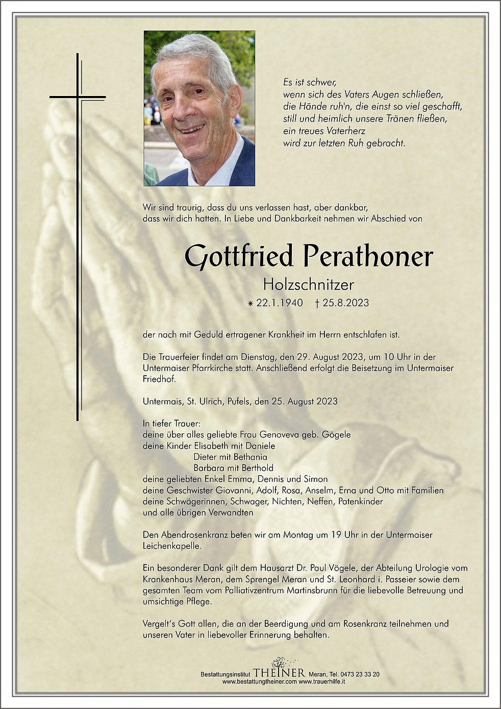 Die Trauerfeier findet am Dienstag, den 29. August 2023, um 10 Uhr in der Untermaiser Pfarrkirche statt. Anschließend erfolgt die Beisetzung im Untermaiser Friedhof.