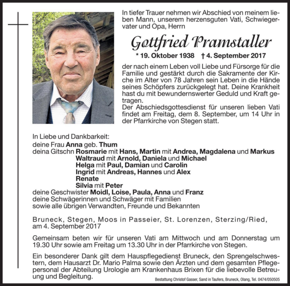 Bruneck, Stegen, Moos im Passeier, St. Lorenzen, Sterzing/Ried, am 4. September 2017