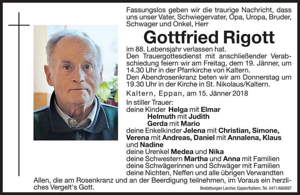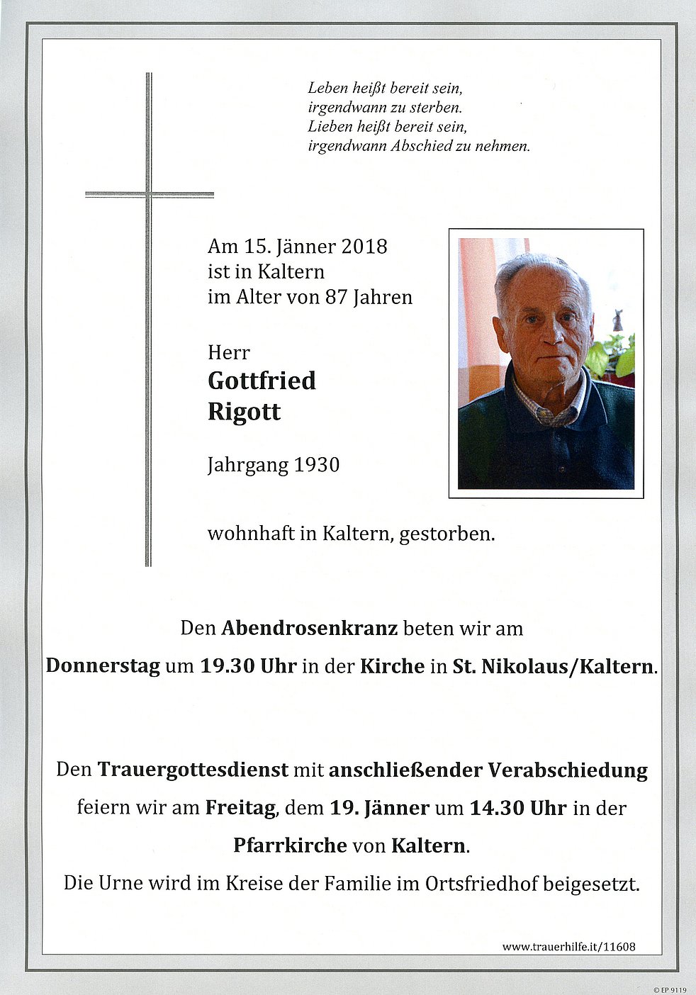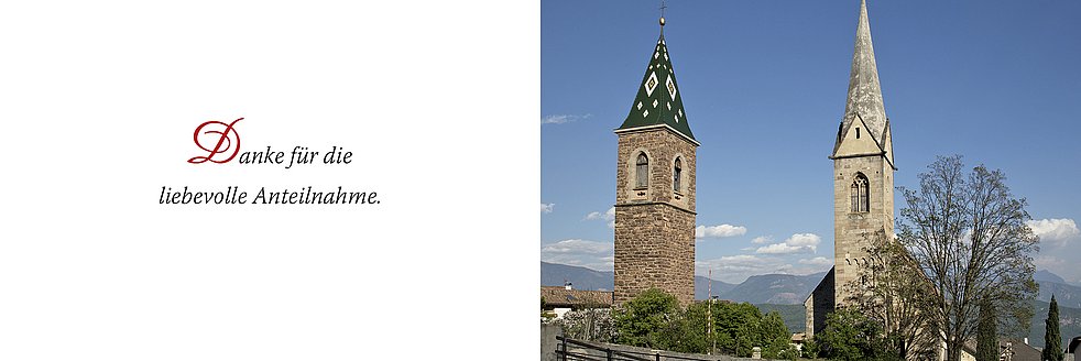 Den Trauergottesdienst mit anschließender Verabschiedung feiern wir am Freitag, dem 19. Jänner um 14.30 Uhr in der Pfarrkirche von Kaltern.
