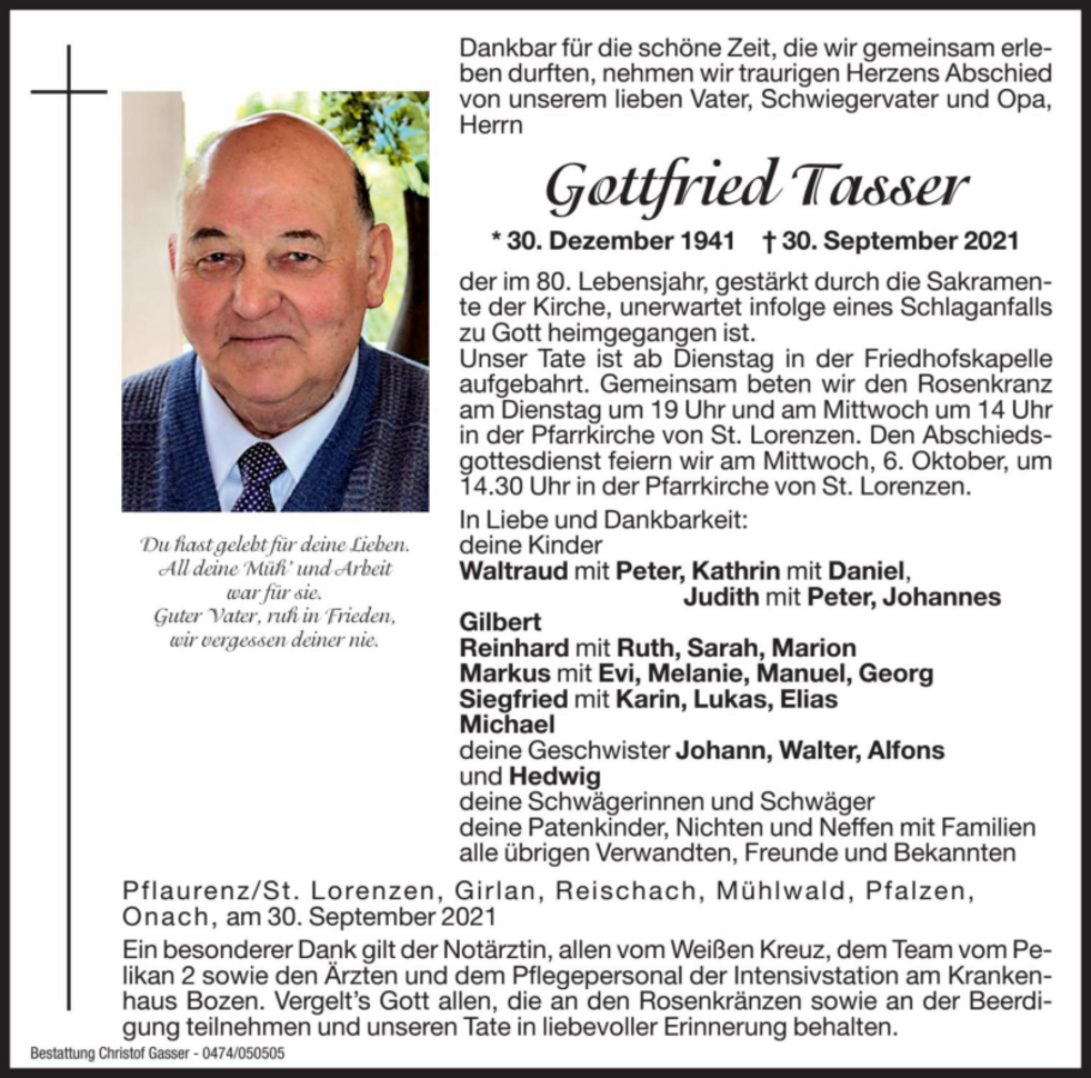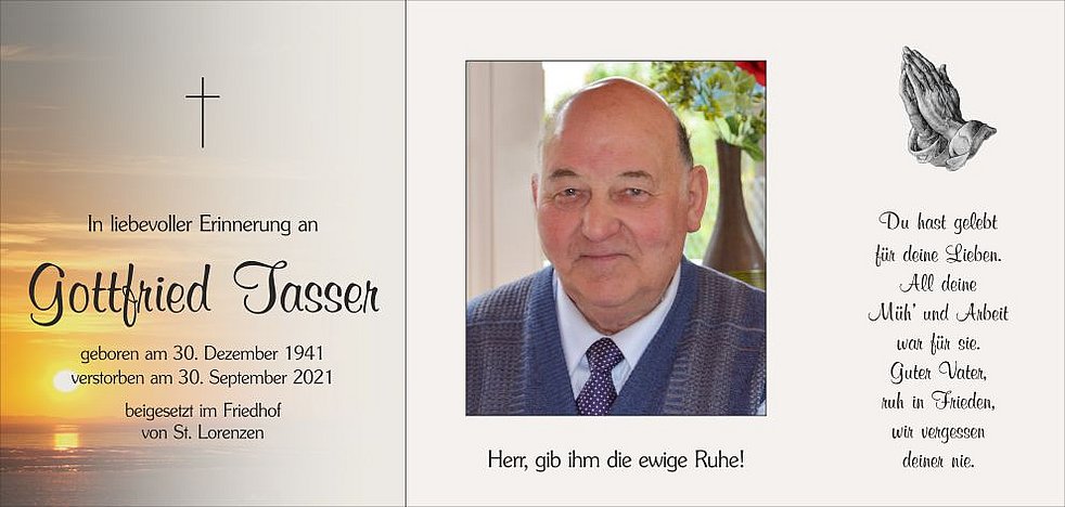 Vergelt’s Gott allen, die an den Rosenkränzen sowie an der Beerdigung teilnehmen und unseren Tate in liebevoller Erinnerung behalten.