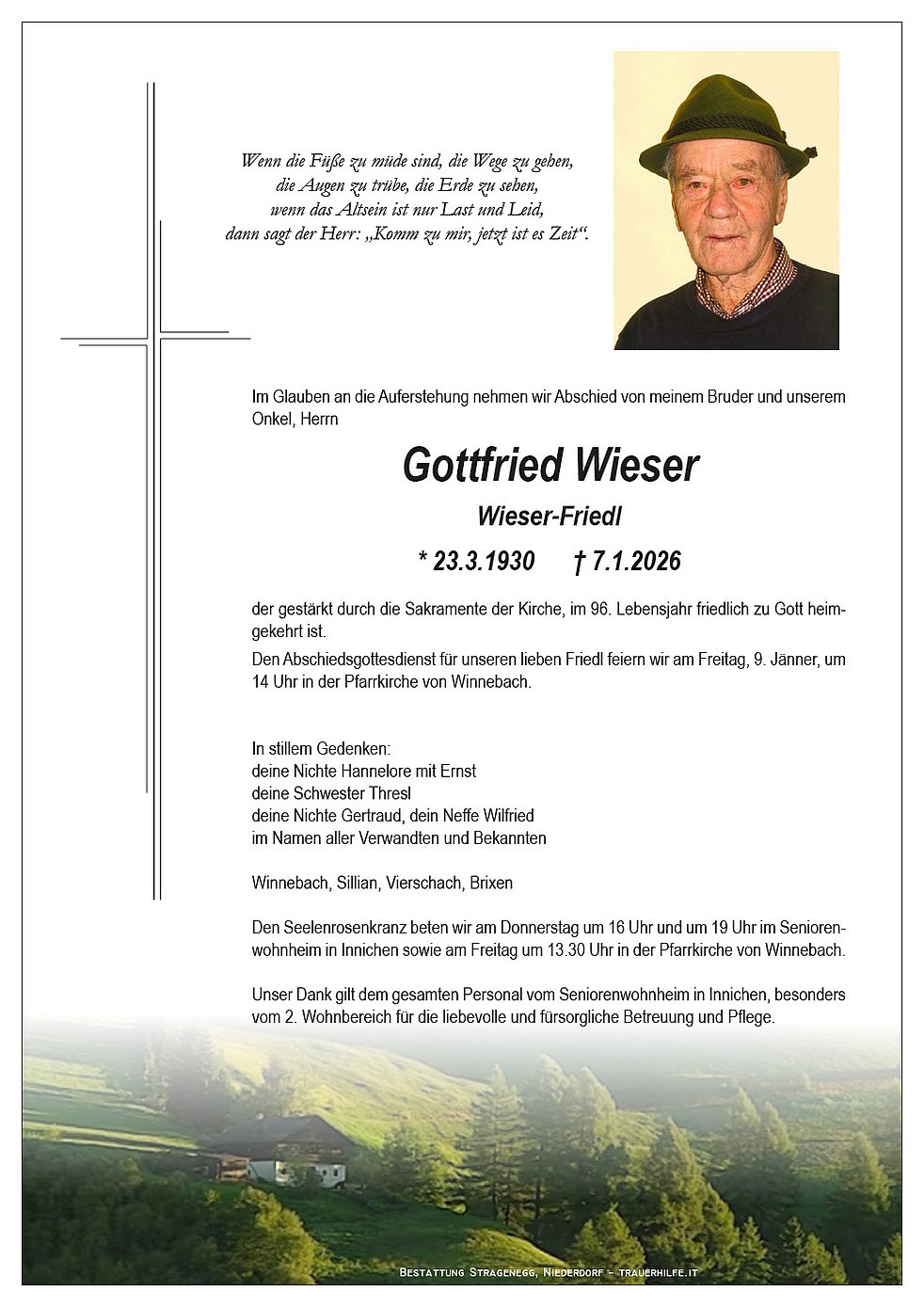 nun bist auch Du gegangen und wieder vereint mit Deinem Bruder Hansl und den Deinen. Ich habe Dich nicht persönlich gekannt, aber die Reportagen über Euch am Wieserhof, haben mich tief berührt und Demut gelehrt. Nehmen wie es ist und wie es kommt, war wohl Dein Credo und dem sollten wir uns alle beugen.