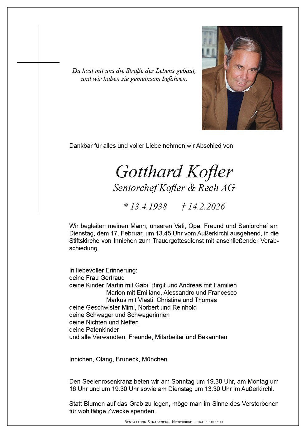 Trauerfeier: 17.02. - 14:00 Uhr Innichen