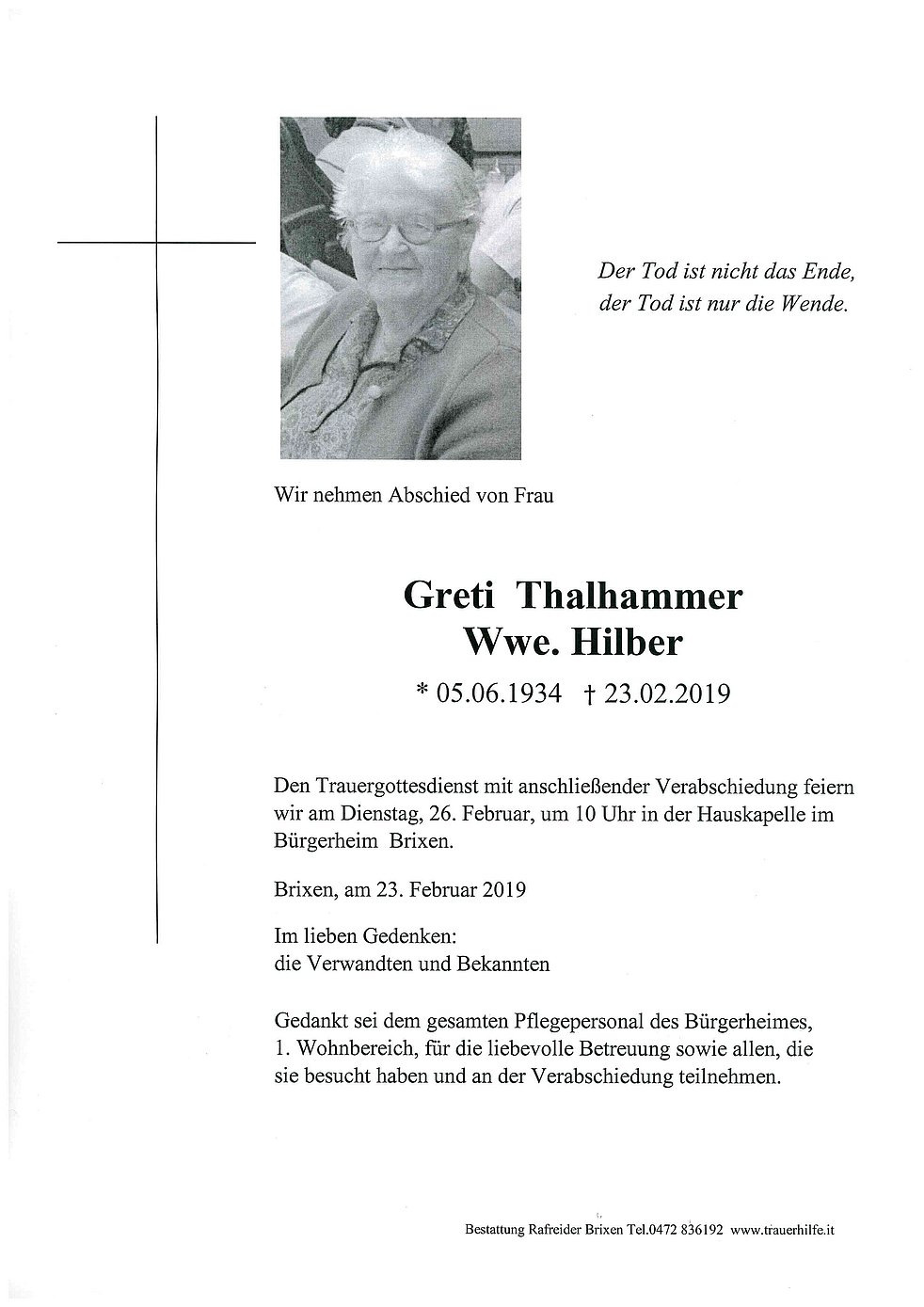 Den Trauergottesdienst mit anschließender Verabschiedung feiern wir am Dienstag, 26. Februar, um 10 Uhr in der Hauskapelle im Bürgerheim Brixen.