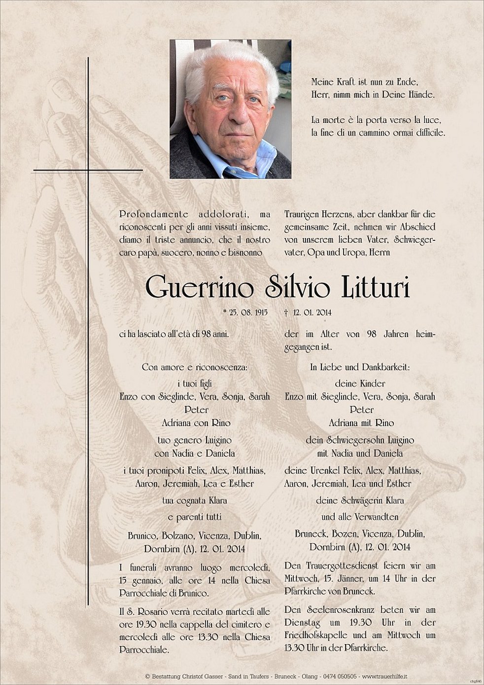 Den Trauergottesdienst feiern wir am Mittwoch, 15. Jänner, um 14 Uhr in der Pfarrkirche von Bruneck.