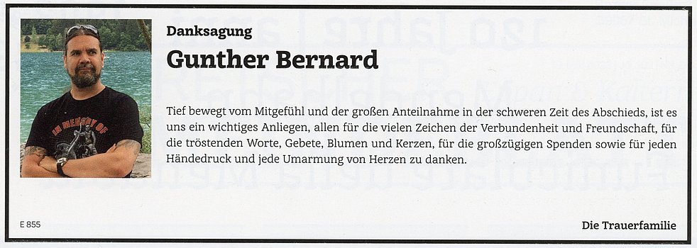 Im Sinne des Verstorbenen möge man für die Hinterbliebenen (IBAN: IT 66 Z 08255 58160 000300280224) spenden.