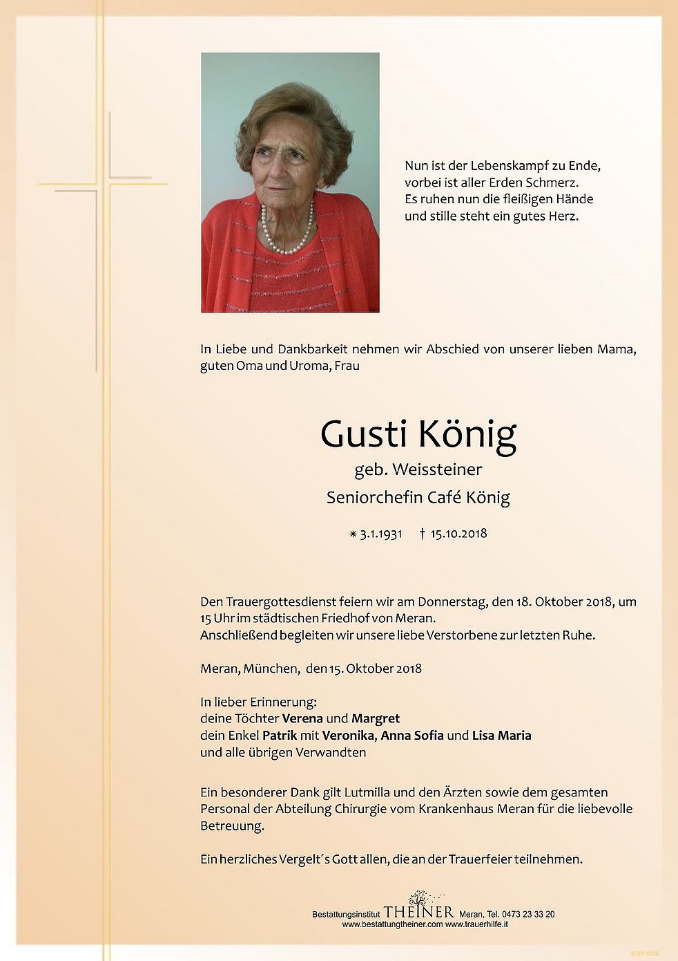 Den Trauergottesdienst feiern wir am Donnerstag, den 18. Oktober 2018, um 15 Uhr im städtischen Friedhof von Meran.