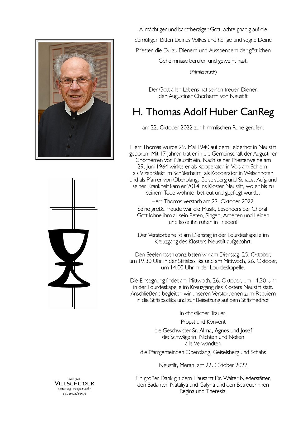 26 Jahre warst du Priester in Oberolang. In dieser Zeit hast du stets eine wertschätzende und freundschaftliche Beziehung zu unserem Kirchenchor gepflegt. Wer singt betet doppelt an diesen Satz des Hl. Augustinus hast du geglaubt und mit deiner großen Musikalität auch selbst gelebt.
