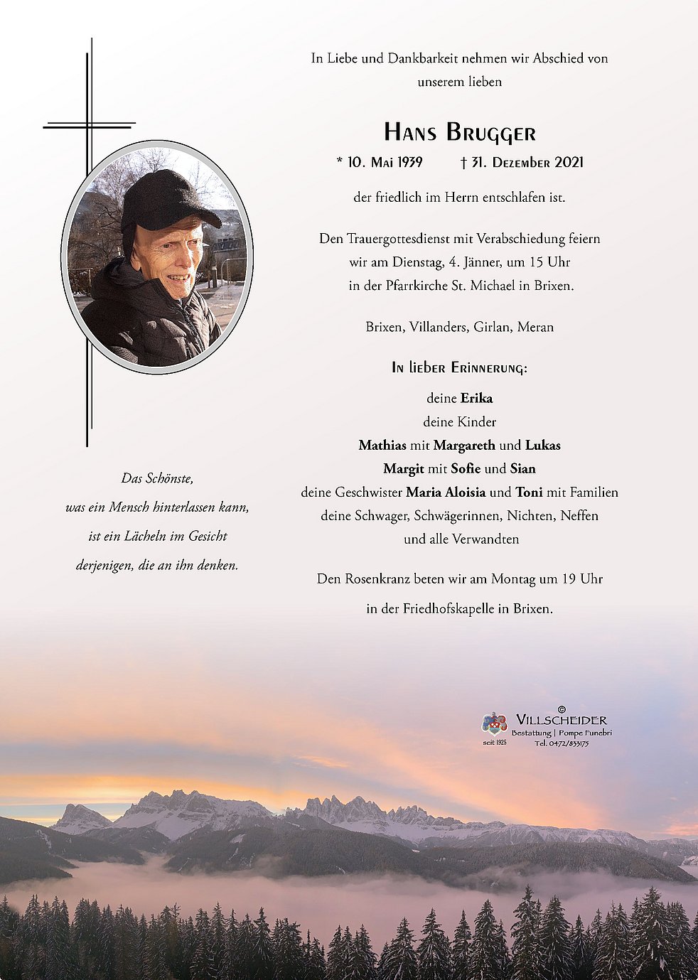 Ruhen sie in Frieden Herr Brugger.Sie waren ein besonderer Kunde.Kommen sie gut an das Ziel ihrer Reise.