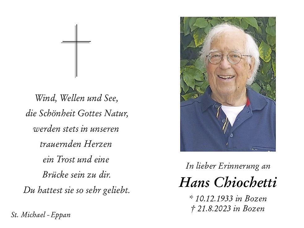 Wir danken dem Hausarzt Dr. Alexander Tavernini, Silvia Sarti vom Gesundheitssprengel Überetsch, der Ärztin Ingrid Stockner und dem Pflegepersonal der Marienklinik für die liebevolle Betreuung.