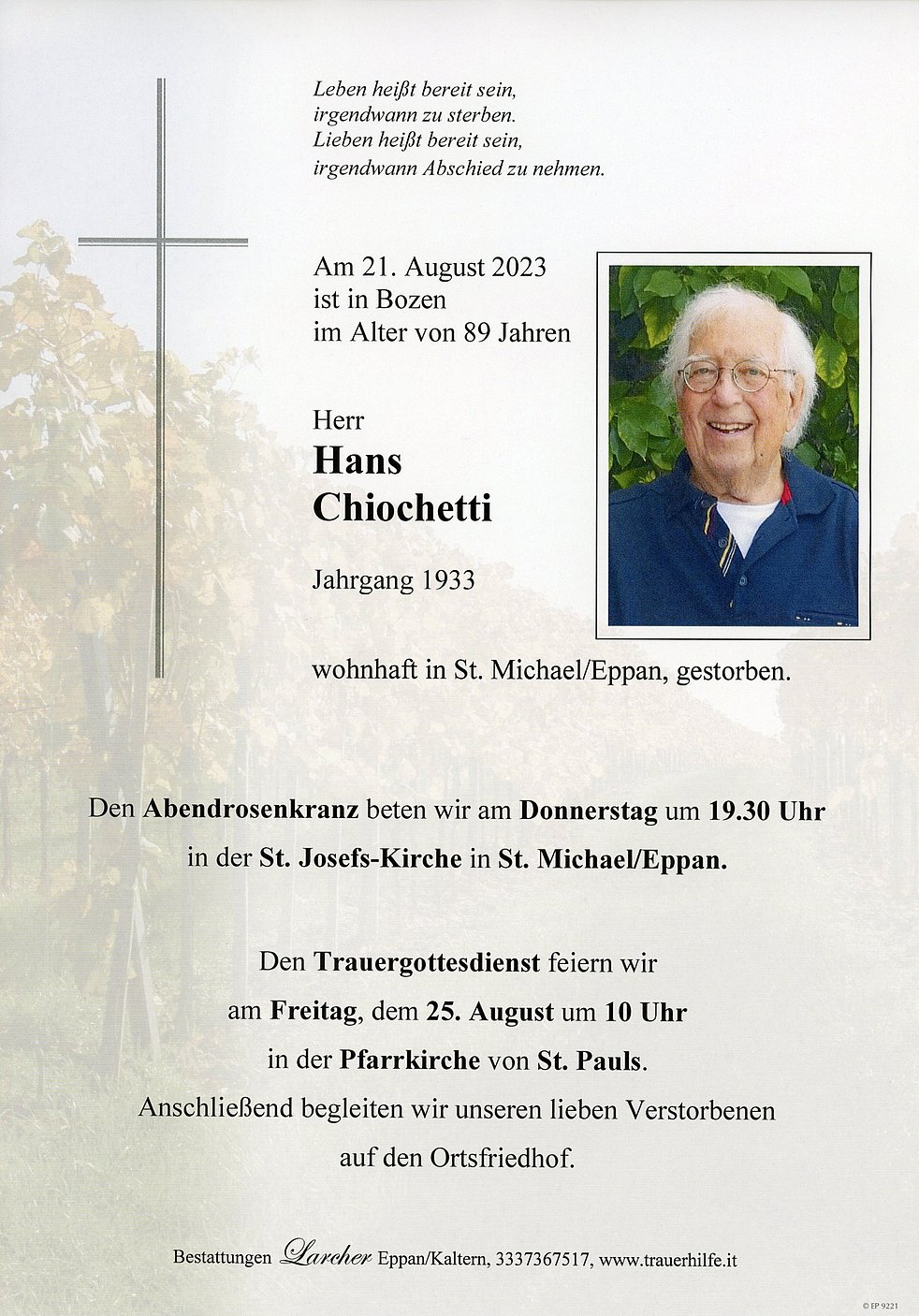 Den Trauergottesdienst feiern wir am Freitag, dem 25. August, um 10 Uhr in der Pfarrkirche von St. Pauls. Anschließend begleiten wir unseren lieben Verstorbenen auf den Ortsfriedhof.