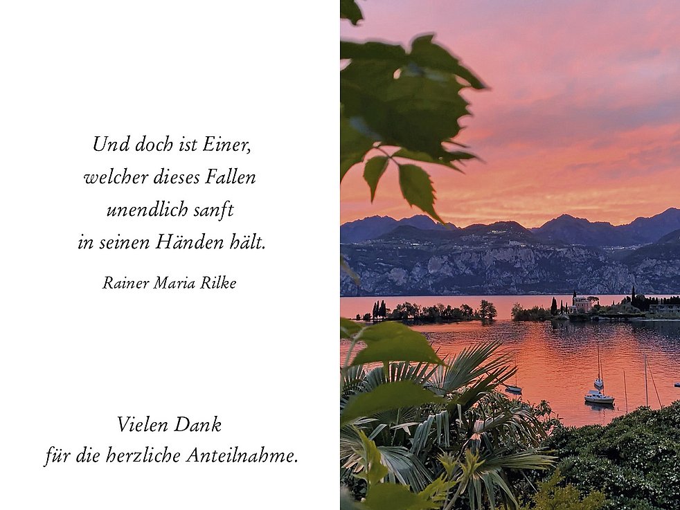 Mit Zuversicht, dass der Tod nicht das Ende ist, nehmen wir in Liebe und Dankbarkeit Abschied von meinem geliebten Mann, unserem Onkel und Großonkel