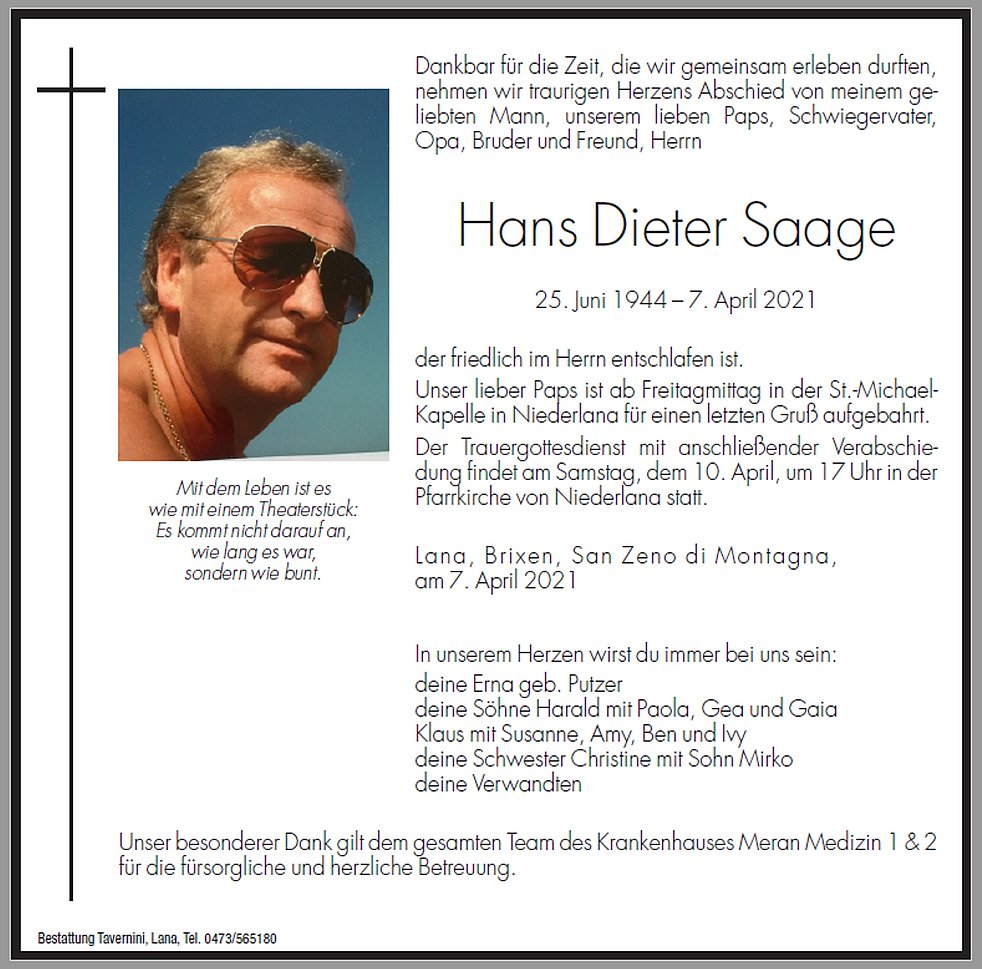 Lieber Klaus, liebe Fam. Saage,