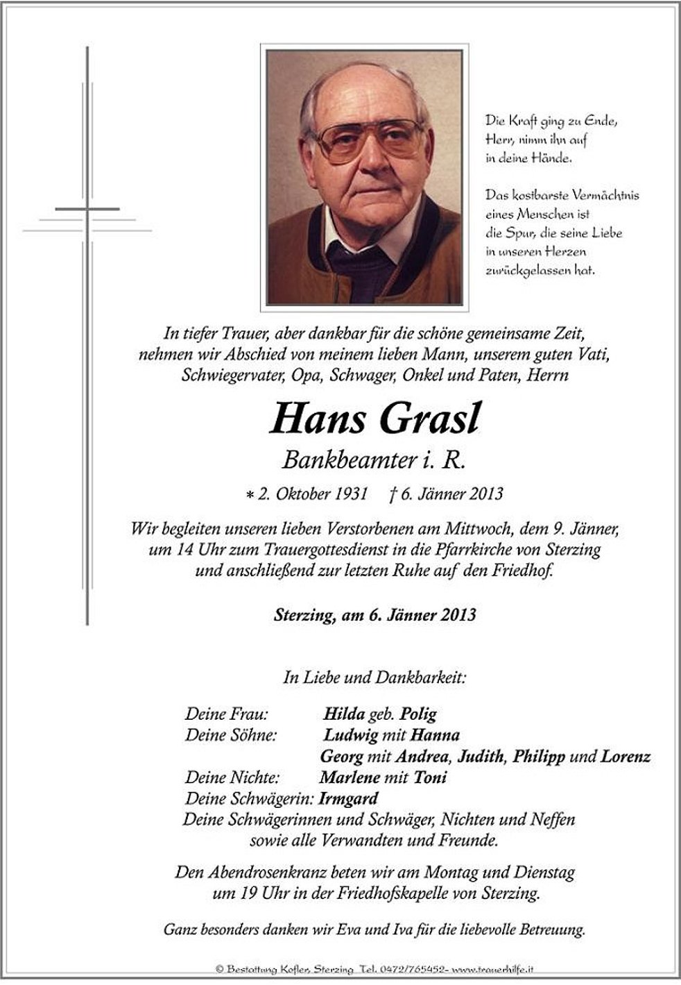 Wir begleiten unseren lieben Verstorbenen am Mittwoch, dem 9. Jänner,