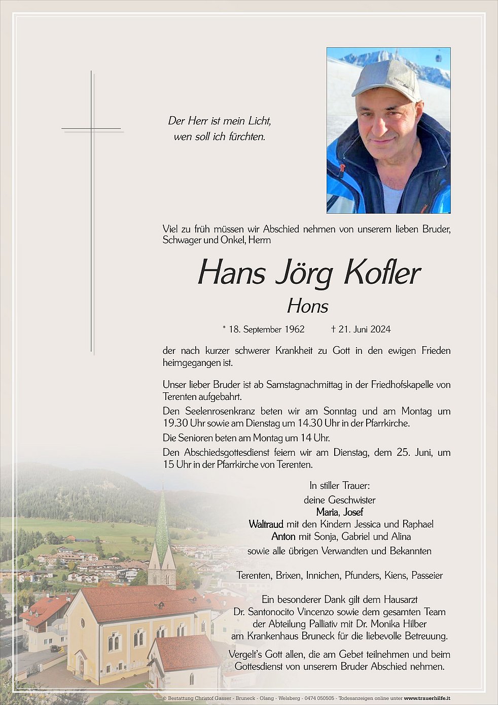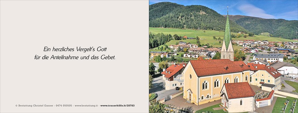 Unser lieber Bruder ist ab Samstagnachmittag in der Friedhofskapelle von Terenten aufgebahrt.