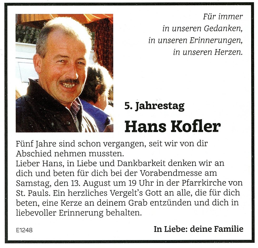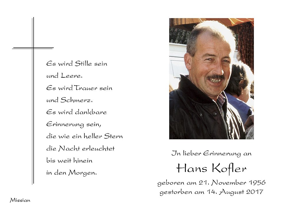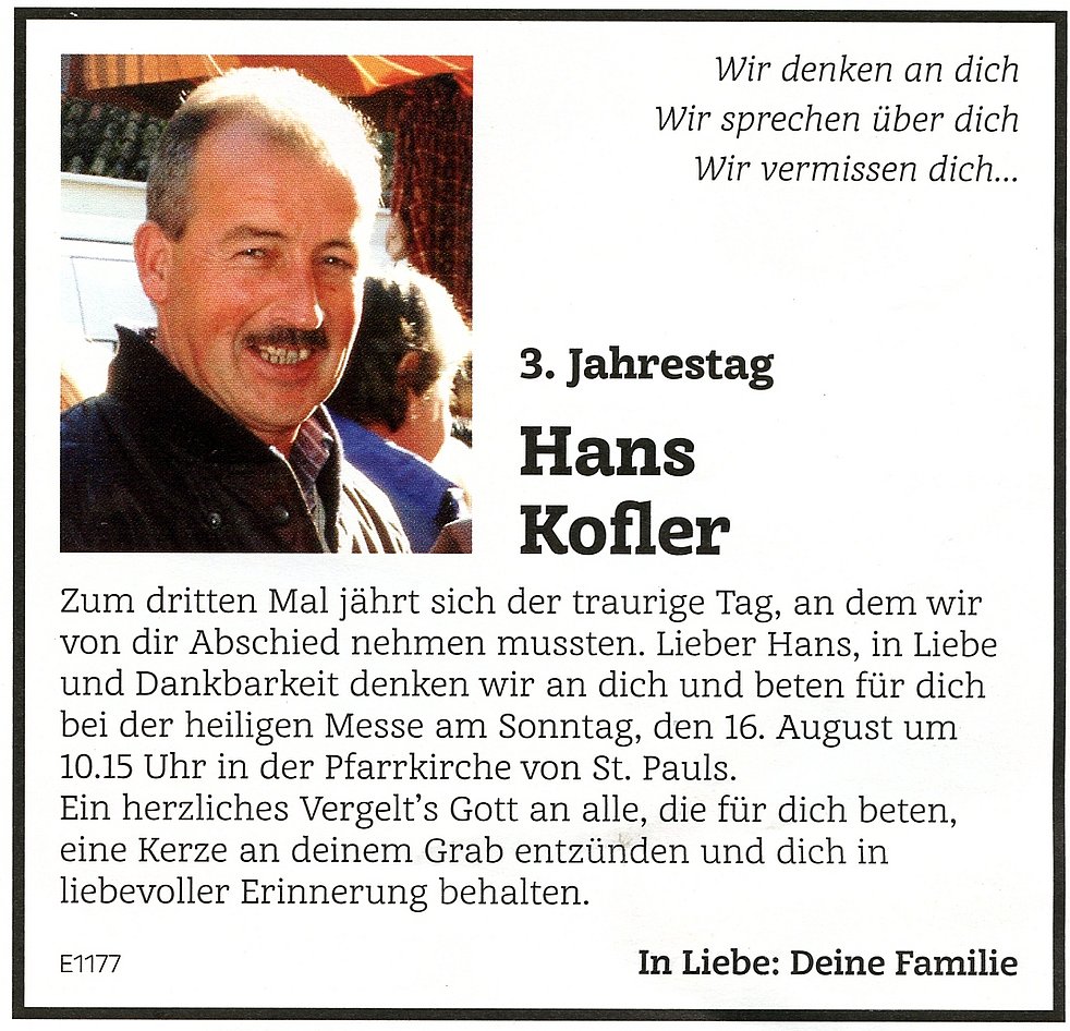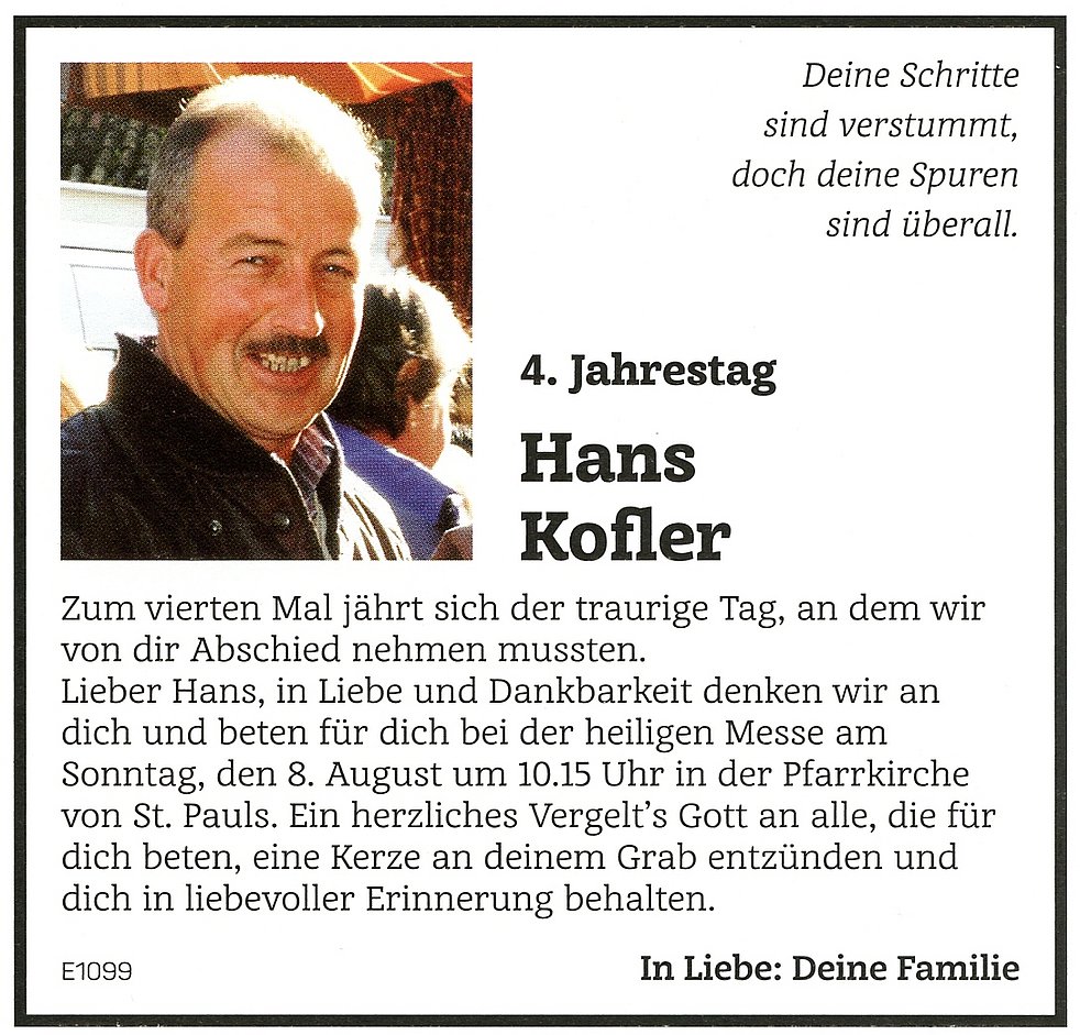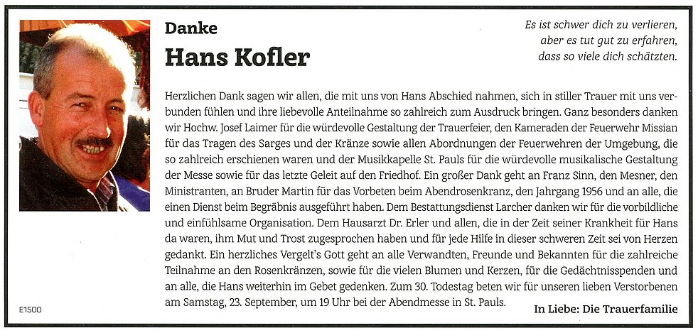 Allen die an den Rosenkränzen und an der Beerdigung teilnehmen im Voraus ein herzliches Vergelt`s Gott.