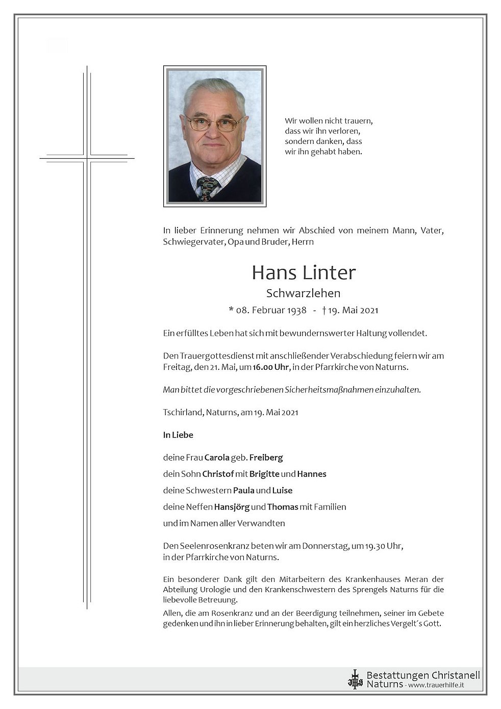Den Trauergottesdienst mit anschließender Verabschiedung feiern wir am Freitag, den 21. Mai, um 16.00 Uhr, in der Pfarrkirche von Naturns.