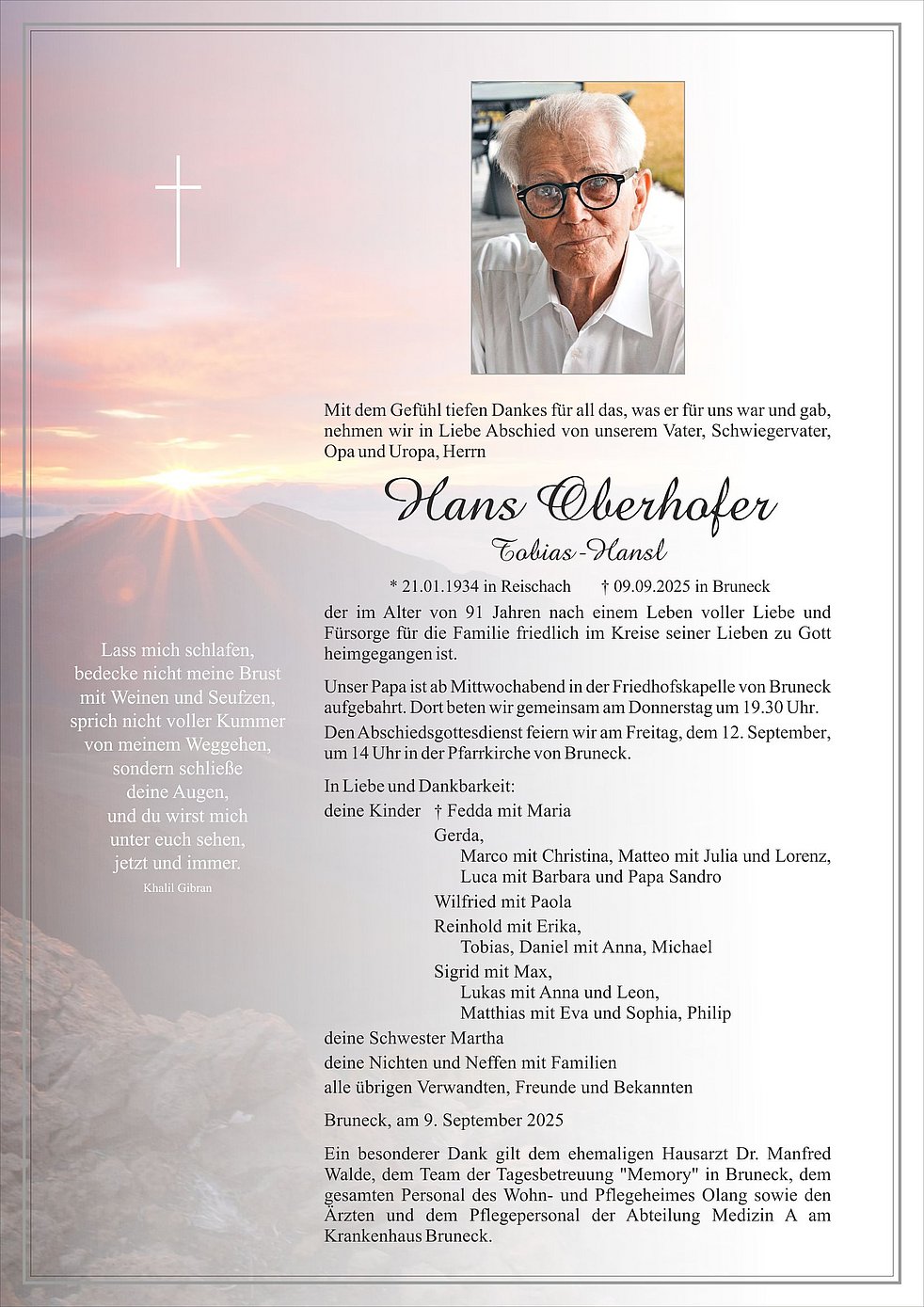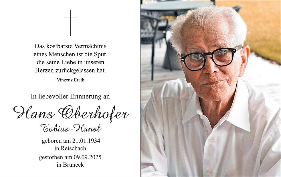 * 21.01.1934 in Reischach † 09.09.2025 in Bruneck