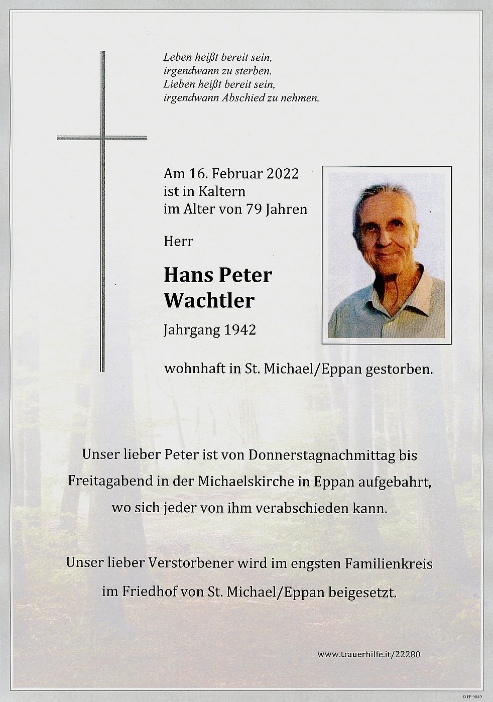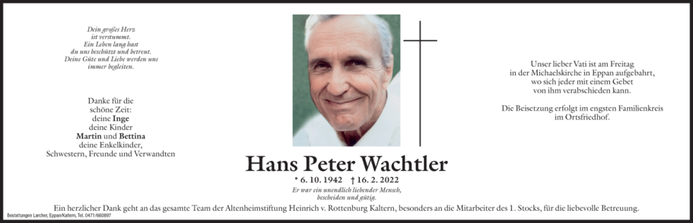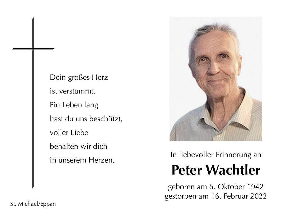 Unser lieber Peter ist am Freitag in der Michaelskirche in Eppan aufgebahrt, wo sich jeder von ihm verabschieden kann.