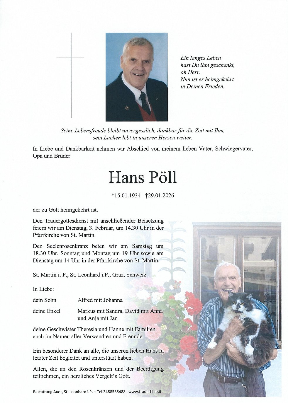 Ein besonderer Dank an alle, die unseren lieben Hans in letzter Zeit begleitet und unterstützt haben.