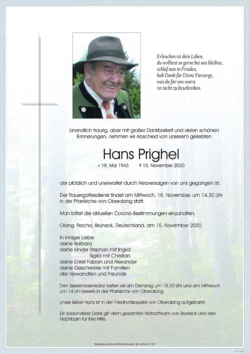Wir sprechen euch von Herzen unser Mitgefühl zum plötzlichen Tod deines Lebenspartners und eures Vaters aus. Er war in eurem Leben sicherlich eine feste Säule, für uns war er ein Mensch, Freund, der uns durch seine besondere Art, seine Lebensfreude und seine Liebe zu den Bergen und zur Natur Südtirol lieben lernte. Er verstand es, zu feiern und das Leben zu genießen! Wir werden ihn ebenso vermissen und in guter Erinnerung behalten!