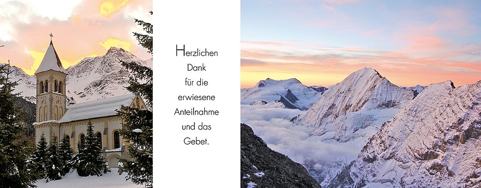 Anstatt Blumen, möge man für die Pfarrkirche von Sulden spenden.