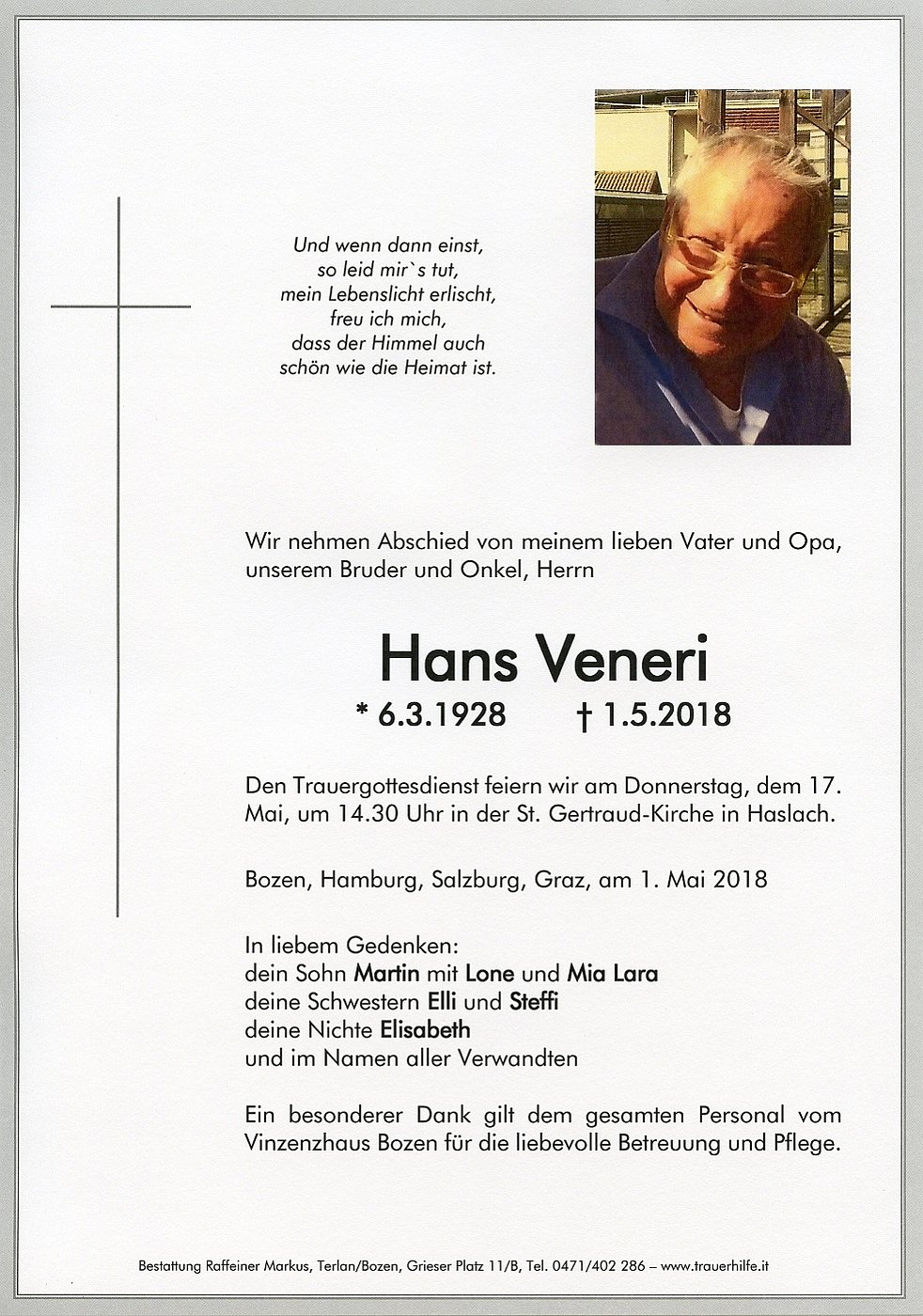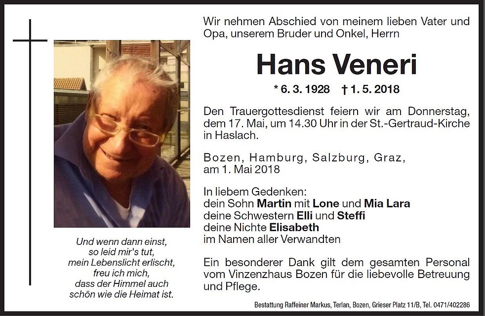 Ein besonderer Dank gilt dem gesamten Personal vom Vinzenzhaus Bozen für die liebevolle Betreuung und Pflege.