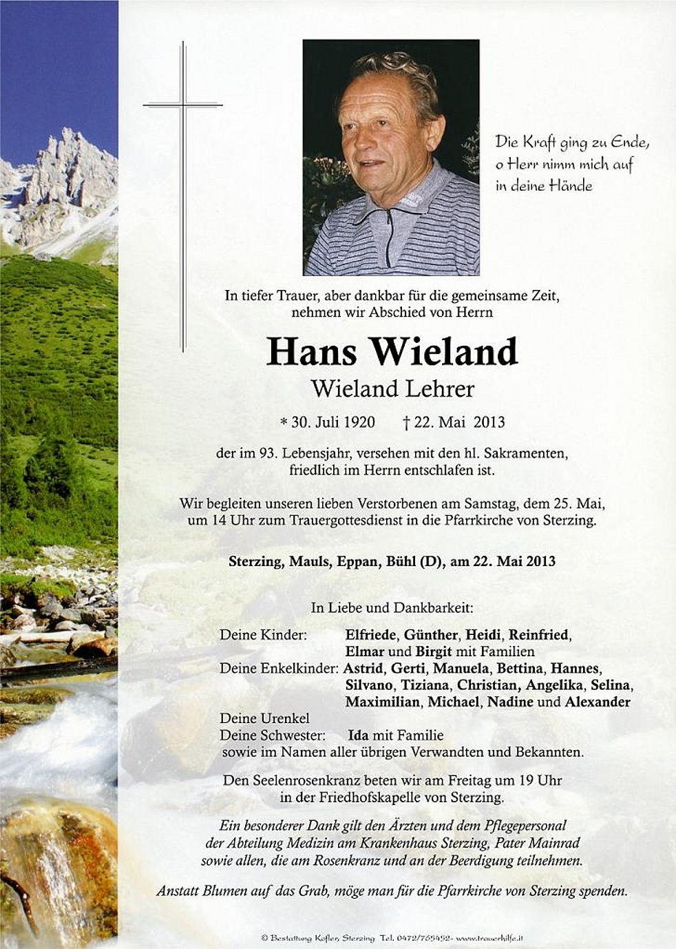 Anstatt Blumen auf das Grab, möge man für die Pfarrkirche von Sterzing spenden.