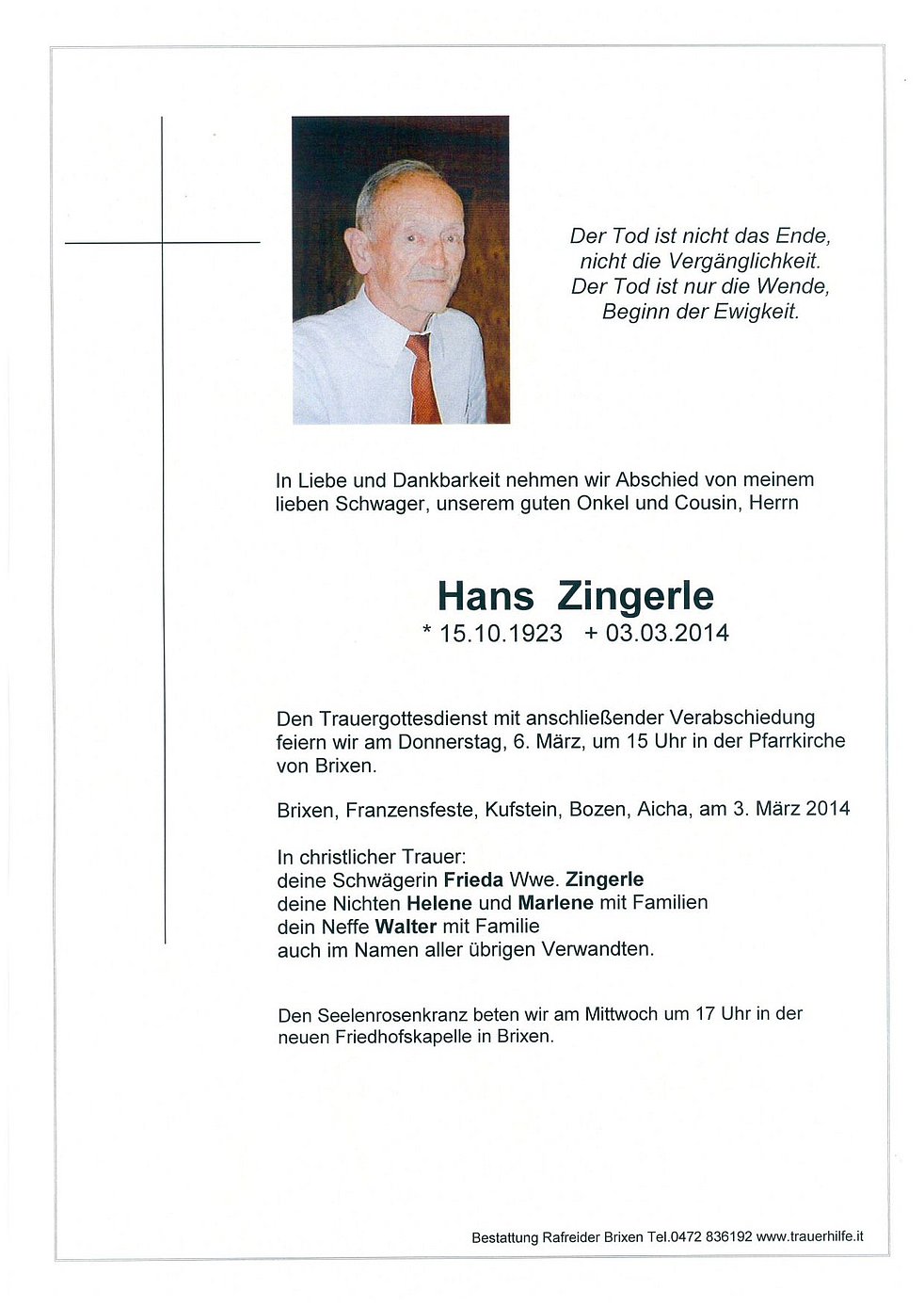 Gedankt sei den Betreuern Gina und Walter, dem Hauspflegedienst, den Ärzten und dem Pflegepersonal der Abteilung Medizin des Brixner Krankenhauses für die liebevolle Betreuung, sowie allen, die am Rosenkranz und an der Verabschiedung teilnehmen.