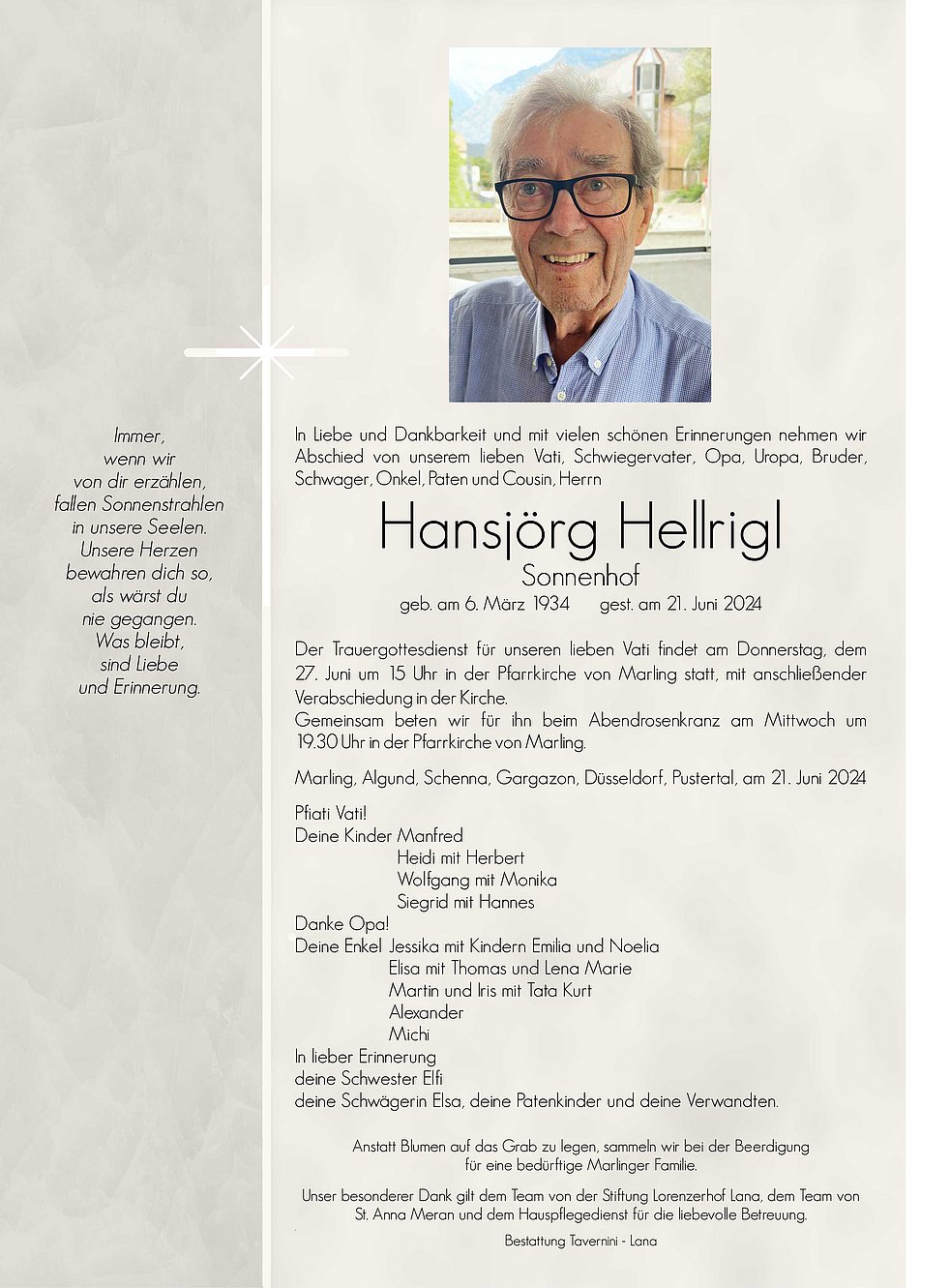 Ruhe in Frieden Hansjörg hobmer lei olm a Hetz kop ban watten sogsch ollen an lieben Gruass de wos schun obn sein im Himmel