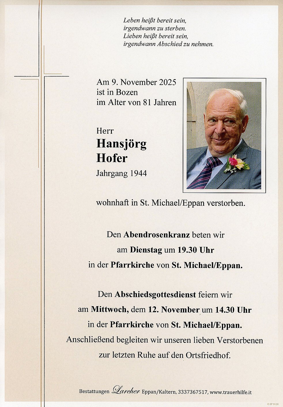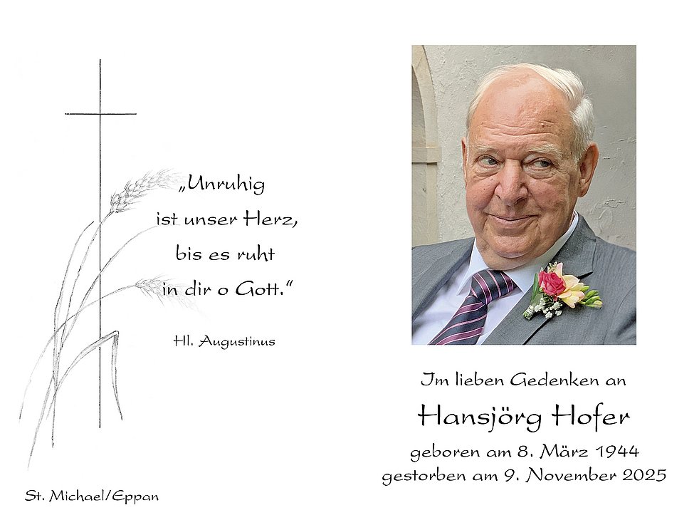 Im Sinne des Verstorbenen möge man an Aktivhilfe für Kinder IBAN: IT 37 U 08998 58810 0003 0021 8197 spenden.