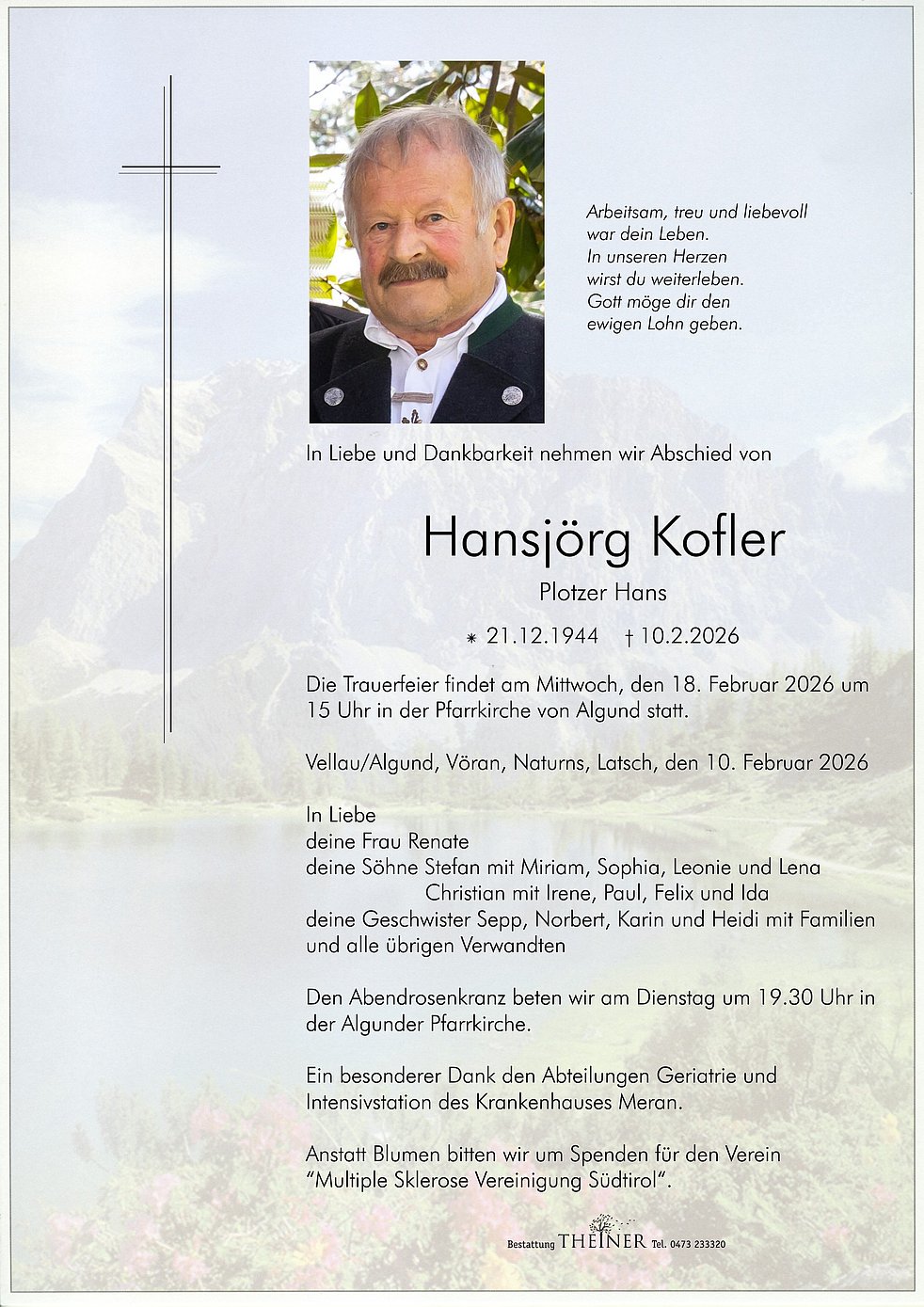 Die Trauerfeier findet am Mittwoch, den 18. Februar 2026 um 15 Uhr in der Pfarrkirche von Algund statt.