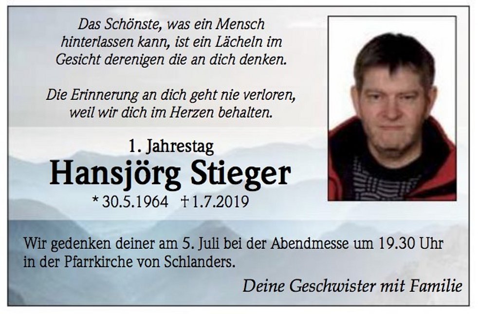 * 30.5.1964 in Schlanders † 1.7.2019 in Trafoi