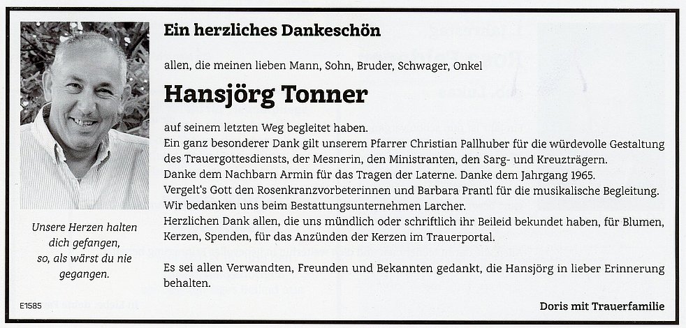 Allen, die am Rosenkranz und an der Beerdigung teilnehmen, im Voraus ein herzliches Vergelt’s Gott.