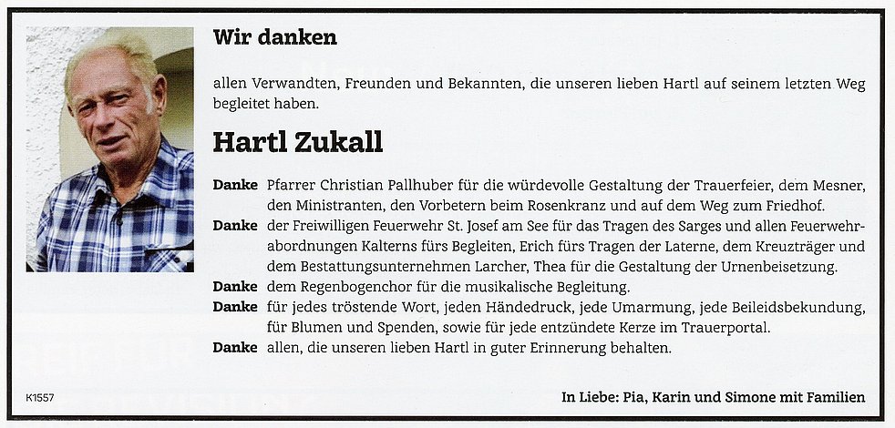 Allen, die am Rosenkranz und an der Beerdigung teilnehmen im Voraus ein herzliches Vergelt’s Gott.