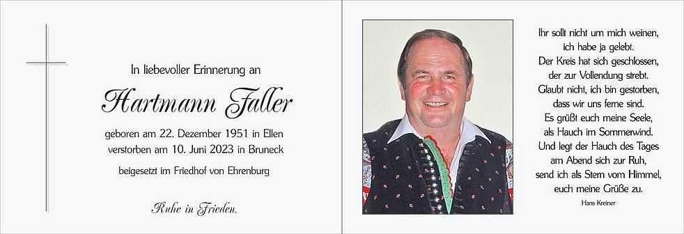 * 22. Dezember 1951 in Ellen † 10. Juni 2023 in Bruneck