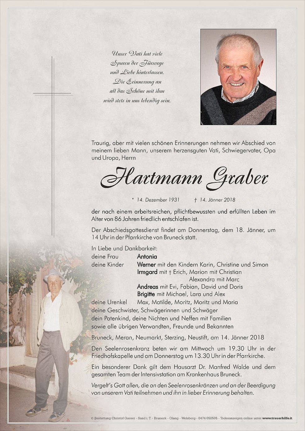 der nach einem arbeitsreichen, pflichtbewussten und erfüllten Leben im Alter von 86 Jahren friedlich entschlafen ist.
