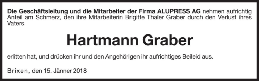 Ein besonderer Dank gilt dem Hausarzt Dr. Manfred Walde und dem gesamten Team der Intensivstation am Krankenhaus Bruneck.