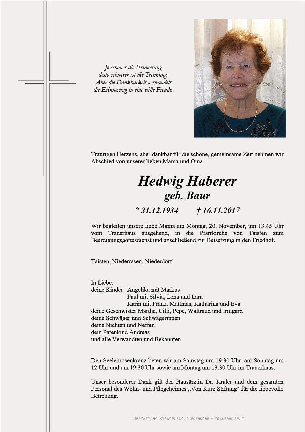 Wir begleiten unsere liebe Mama am Montag, 20. November, um 13.45 Uhr vom Trauerhaus ausgehend, in die Pfarrkirche von Taisten zum Beerdigungsgottesdienst und anschließend zur Beisetzung in den Friedhof.