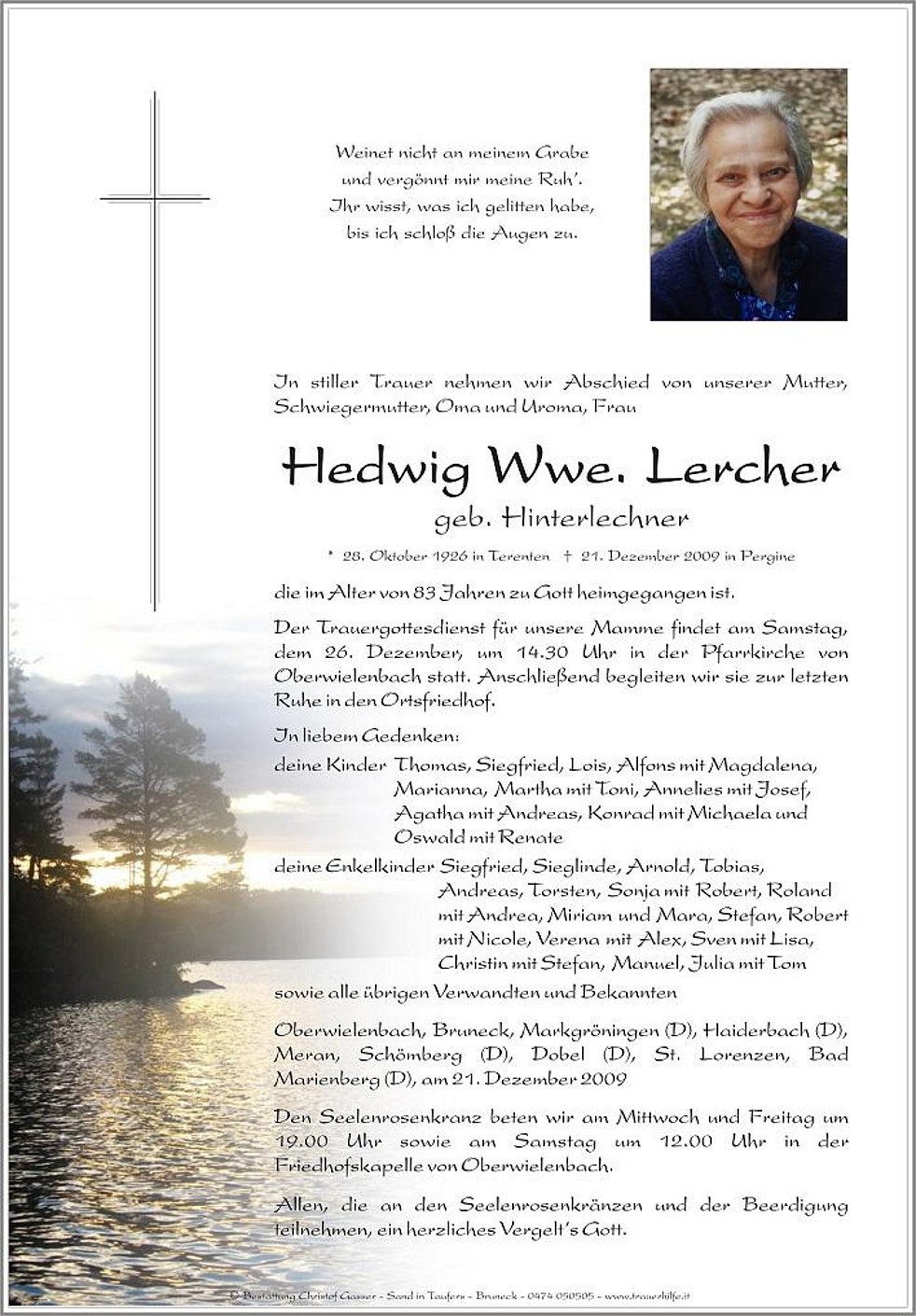 * 28. Oktober 1926 in Terenten † 21. Dezember 2009 in Pergine