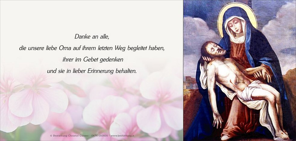 Anstelle von Blumen auf das Grab zu legen, möge man für die Pfarrkirche von Niedervintl oder für wohltätige Zwecke spenden.