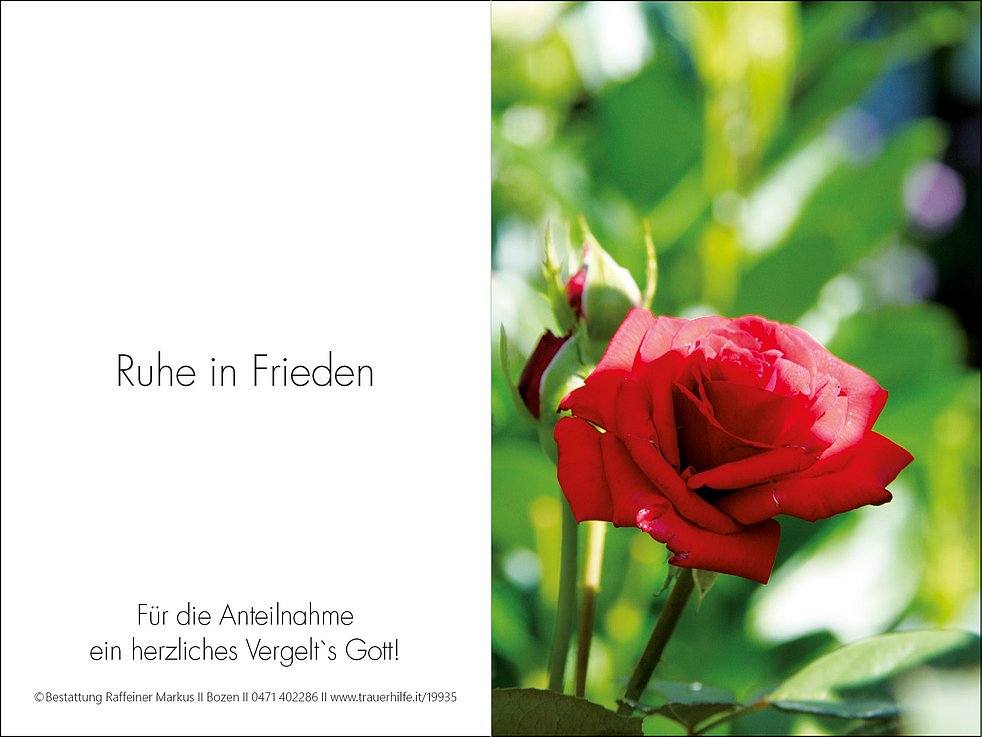 Ein herzlicher Dank gilt meiner Frau Anni, meinen Kindern und der Pflegerin Alessia, die sie in den letzten Jahren liebevoll und führsorglich betreut haben.