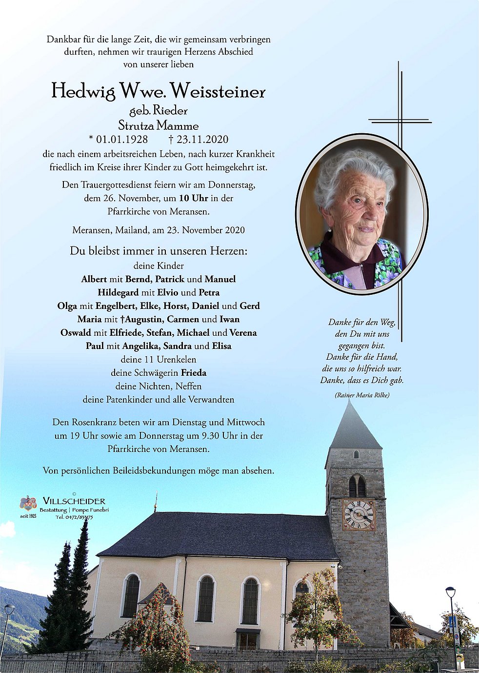 Liebe Hildegard, Olga, Maria, Albert, Oswald und Pauli mit Familien, wir möchten euch unser herzliches Beileid zum Verlust eurer lieben Mamma ausdrücken. Wir wünschen euch viel Kraft und Trost.